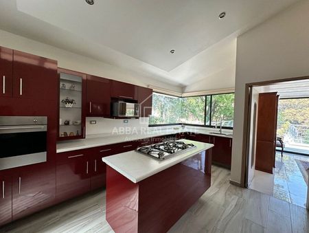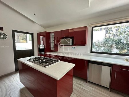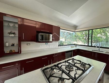 Espaciosa estancia de sala-comedor con acabados de lujo con salida a una bella terraza. Cocina integral de buen tamaño, un family room, tres recamaras de buen tamaño cada una de ellas con vestidor y baño completo, la principal con Jacuzzi, todas con salida a un increíble jardín de más de 1,100 mts;  el cual es perfecto para tus encuentros sociales ya que cuenta con una casita con todos los servicios rodeada de hermosos árboles. Además cuenta con dos cuartos de servicio con baño, área de lavado y bodega. Un estacionamiento el cual cuenta con área techada para tres automóviles y espacio abierto para cinco más.