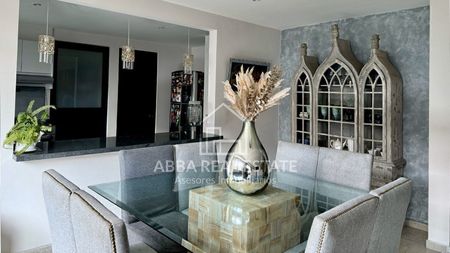 Distribución: Espacios comunes en la planta baja como sala, comedor y cocina abierta; en el primer piso, la distribución de las dos habitaciones con balcones compartiendo baño completo así como la habitación principal con amplio vestidor y baño completo, y finalmente el roof garden en el tercer nivel.